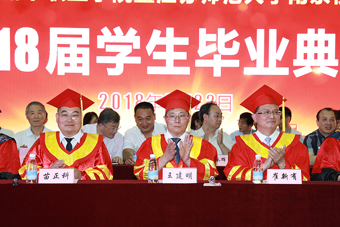 毕业典礼上,副校长兰亚明宣读了《2018届优秀毕业生表彰决定》,希望广大同学以优秀毕业生为榜样,志存高远、勤于学习、努力进取、做德智体美全面发展的社会主义建设者和接班人。江苏师范大学副校长苗正科宣读了《关于授予苏晓等179名同学学士学位的决定》。
