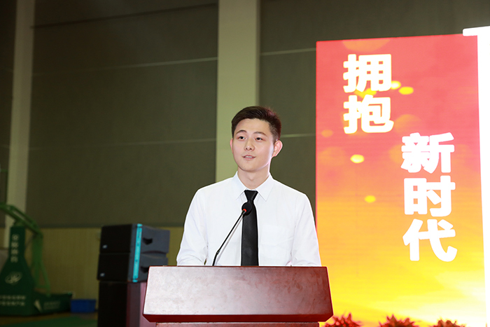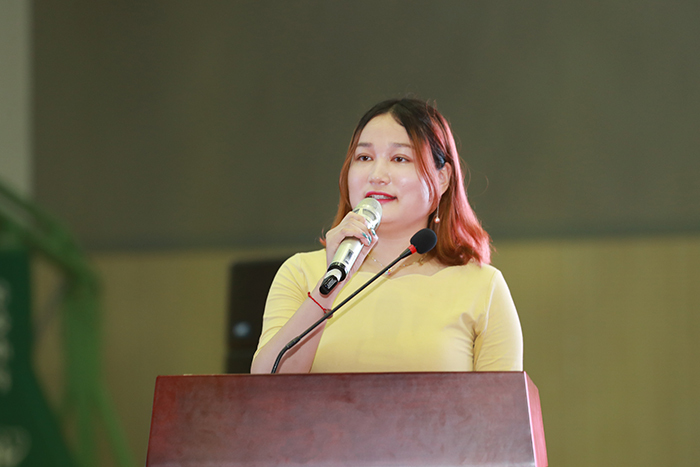 毕业生代表张萌(传媒与设计学院,国家奖学金获得者)回顾了在校学习生活的点滴细节,表达了对母校浓浓的留恋和不舍之情。倡议全体同学,要牢记“自强奋进”的校训精神,带着母校赋予的这份踏实与执着,努力担负起时代与社会赋予的责任,以奋斗和实干来彰显新时代青年风采。