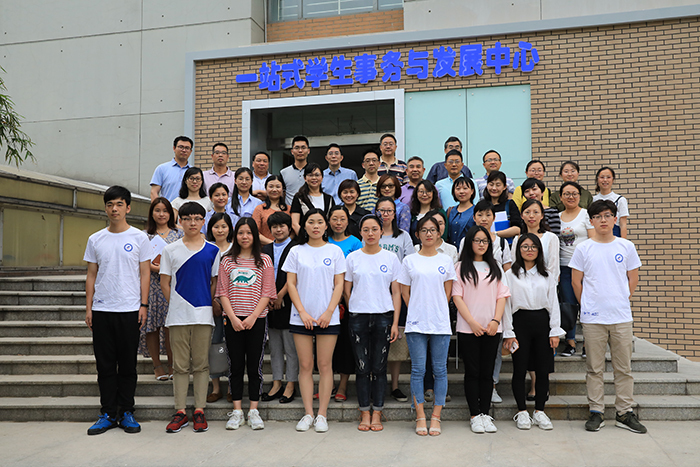 6月5日下午,我校在应天校区综合楼门口举行“一站式”学生事务与发展中心启用仪式,校党委副书记、副校长金丽霞出席,相关职能部门负责人和各学院党总支负责人,全体辅导员,学生助理、学生代表共计100余人参加了启用仪式。仪式由学工处处长季海菊主持。