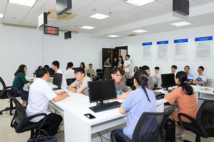在为“一站式”学生事务与发展中心揭牌后,金丽霞带领与会师生参观了中心,逐一走访各服务窗口,与窗口工作人员和现场正在办事的学生进行了亲切交谈。学生们在现场纷纷开展咨询,窗口工作人员逐一耐心解答,进一步拉近了学生与老师之间的距离。