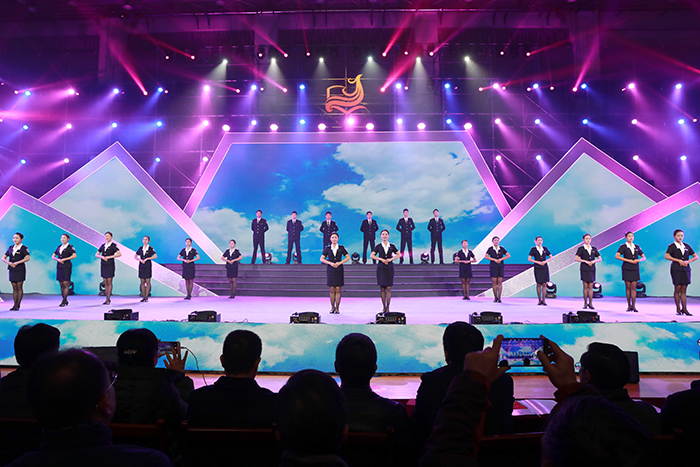 欢腾的鼓乐《鼓舞新时代》拉开了晚会的序幕,激昂的音符喜迎新年的到来;朗诵《圆梦从这里起航》、歌曲《我相信》、武术《少年当自强》演绎出我校办学系统学子追梦路上不服输的斗志和砥砺奋进的决心;街舞《青春开大》、青春组合《逆光》、健美操《青春魅力》、歌曲联唱《奔跑吧,青春》将我校办学系统学子年轻飞扬的青春风采发挥得淋漓尽致;航空礼仪《逐梦蓝天魅力航空》彰显了专业与艺术的完美结合;朗诵《古韵彭城 大美徐州》、舞蹈《扬州姑娘》、《桃红柳绿江南春》、《情谊深长》展现了地域性民俗色彩,散发着浓郁的地域文化气息。