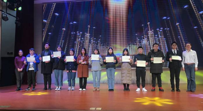 晚会进行期间还播放了校友的祝福视频,穿插了赴韩短期实训游学汇报,学院领导为本年度学院优秀学生干部、年度之星颁发了奖杯和获奖证书。最后在《相亲相爱》大合唱的温馨气氛中,晚会完美落幕。
