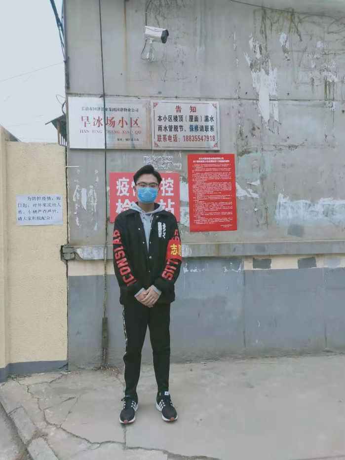18级建筑室内设计3班的许智超家在山西省长治市潞州区惠丰社区,他于2月3号开始参加志愿活动,负责社区人员进出登记,劝告进出人员佩戴口罩,并向社区居民讲解防疫知识等。许同学说,一切都会好的,城南的花都开了!
