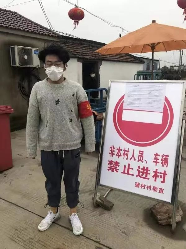 19级城市轨道交通三班的王大鹏同学家乡在常州市溧阳市上兴镇汤桥乡,王同学作为防疫工作的志愿者,主要负责本地人员出入登记,体温测量,口罩发放。王同学说,我相信我们能共渡难关,一切会好起来,加油!