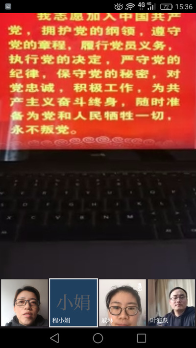 怀着对中国共产党的崇高敬意,在程小娟书记带领下,全体党员在线重温了入党誓词,党员们一字一句,铿锵有力,正如同战胜疫情的坚定决心。
