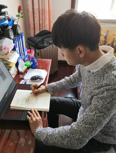 19级的学生们尽快调整适应了这样全新的上课方式。在听工科数学课时,详细地做着课堂笔记。“疫情挡住了我们回学校的脚步,但挡不住我们学习的热情”有学生发出这样的感叹,“我很开心线上教学解决了我们在疫情期间无法正常学习的问题,隔着屏幕,我能感觉到老师教学的用心,能与许久未见的同学们相见,这让我感觉很亲切。”