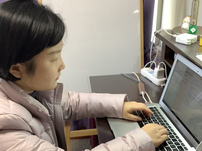 教学秘书徐苏倩老师积极参与讨论线上教学各项工作,对于几分钟内涌现出近百条信息、通知和公告,她时刻关注,不敢放松一丝一毫,自己吃透文件后再向各系部进行传达。