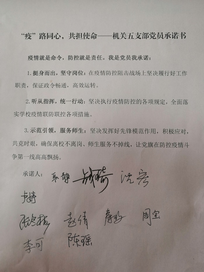活动第三阶段,支部书记耿静领读了《“疫”路同心 共担使命——机关五支部党员承诺书》,凝聚起全体党员合力抗疫、共克时艰的强大正能量。