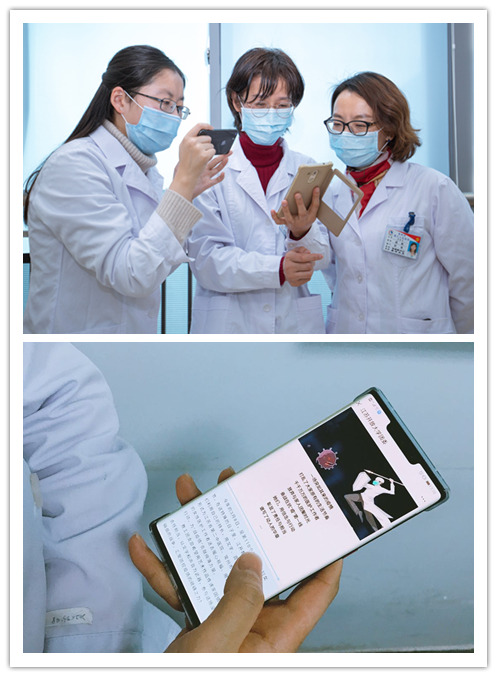 (医务人员观看我校老师送去的加油推文)