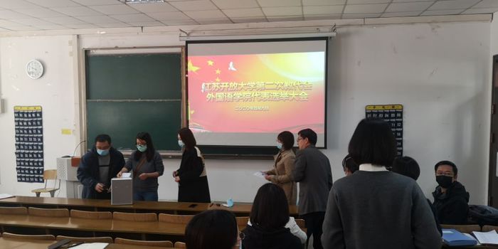 根据学校《江苏省高等学校教职工代表大会实施办法》、学校《关于做好江苏开放大学(江苏城市职业学院)第二次教职工代表大会有关选举工作的通知》和相关文件精神,外国语学院于2020年4月9日上午在古平岗校区教学楼1-2阶梯教室召开了全体教职工大会。校党委常委、副校长牛玉韬同志出席并参加会议,外国语学院党总支部副书记章琼主持会议。