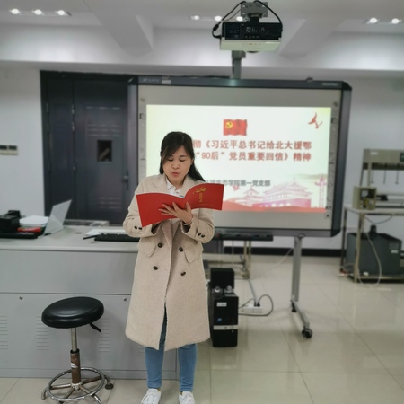 2020年4月14日下午3点,环境生态学院第一党支部在图书馆楼6002室召开本月的党员活动日活动,专题学习习近平总书记2020年关于“全面从严治党”讲话精神和《习近平总书记给北大援鄂医疗队“90后”党员重要回信》精神。