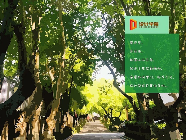 专门制作了欢迎学生返校行架,让学生一进校门就能感受到学院传递的温暖:春已至,芳菲来,祖国山河无恙,阳光少年踏歌而归,亲爱的同学们,好久不见,设计学院已等你多时••••••