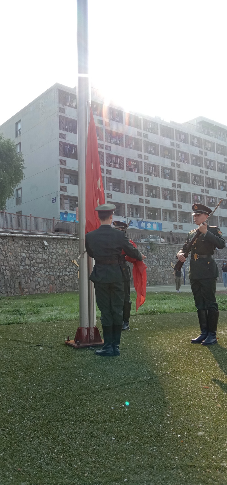 上午7时30分,“云”升旗仪式准时开始。全院师生通过团总支的实况转播,在直播平台观看升旗仪式。随着一声“起立”,画面中旗手们庄严肃穆,伴随着国歌的旋律,迈着铿锵的正步前进,屏幕前的同学站姿挺直,隔空面向国旗,向国旗行注目礼,齐心共唱国歌。