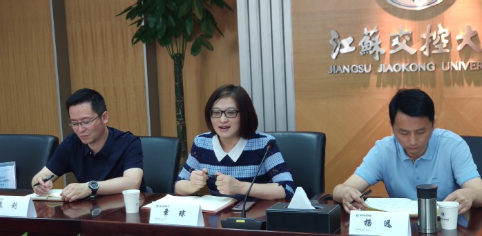 外国语学院党总支部副书记章琼介绍了江苏开放大学及外国语学院的基本情况,学校高举“开放、本科”大旗,实现了中职—高职—应用本科的贯通培养,表达了学校、学院与企事业单位进行全方位深入合作的愿望;杨远院长介绍了招生专业和政策,并对合作办学招生的问题进行了答疑。会上,学院还播放了江苏开放大学的宣传片,使得对方对江苏开放大学的历史发展脉络和功能定位有了更清晰的认识。