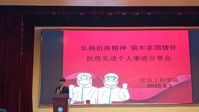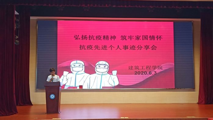 6月3日下午,建筑工程学院学工办在体艺馆406举办了“青春在战疫中绽放”——抗疫志愿者事迹分享会。建筑工程学院党总支部副书记吴红梅、全体辅导员、学生党员及入党积极分子、18、19级各班学生干部共150余人参加,活动由吴红梅副书记主持。