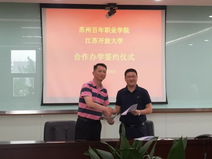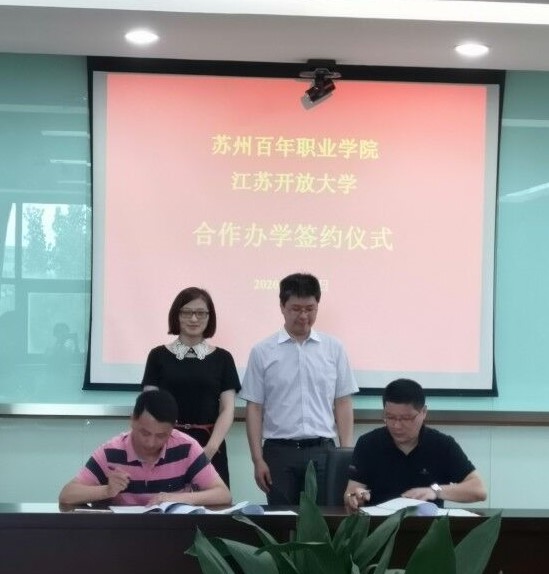 2020年6月5日,外国语学院一行6人在院长杨远、党总支部副书记章琼的带领下,赴苏州百年职业学院进行办学合作洽谈,并代表江苏开放大学顺利签订两校合作办学协议。