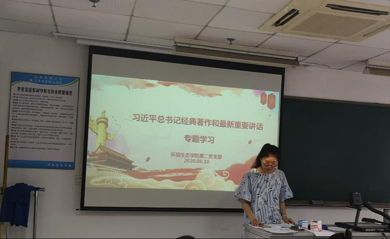 2020年6月10日下午,环境生态学院第二党支部在综合楼306室召开主题党日活动,进一步深入学习关于习近平新时代中国特色社会主义思想和习近平总书记最新重要讲话精神。