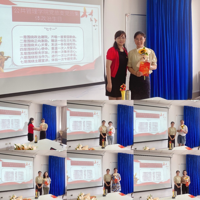本次系列活动以党员教师集体过政治生日为主线,围绕“七个一”开展,一是围绕政治建院,齐唱一首爱国歌曲;二是围绕正向激励,赠送一份生日礼物;三是围绕关心关爱,发送一条祝福短信;四是围绕初心使命,重温一次入党誓词;五是围绕服务宗旨,开展一次集体谈心;六是围绕担当作为,进行一次公开承诺;七是围绕主题宣讲,体验一次专题党课。