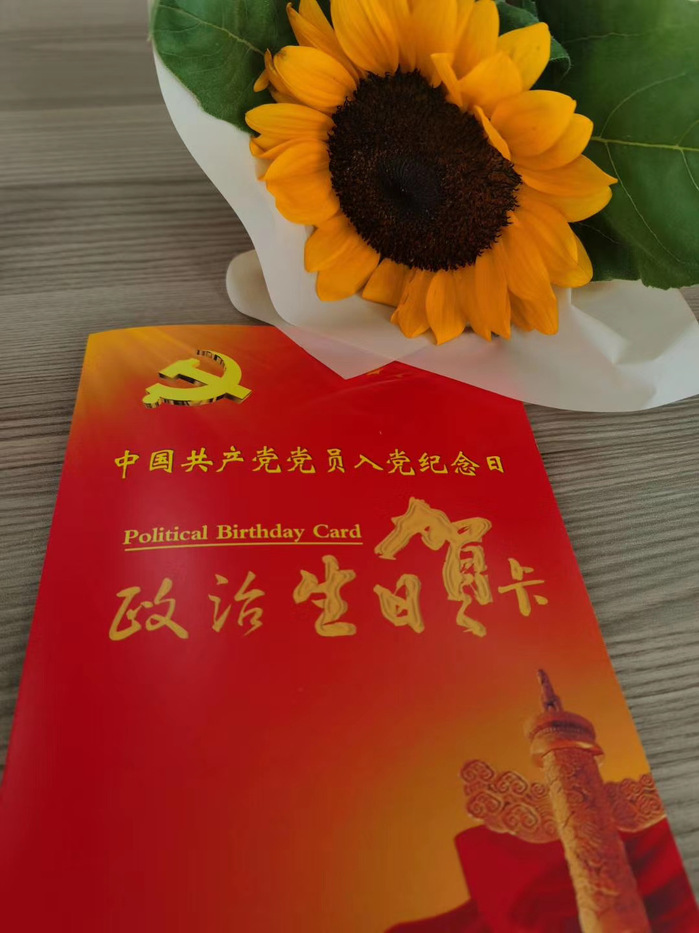 活动第四个部分,汤丽丹为学院党员教师赠送政治生日贺卡及鲜花。在昨天她还贴心地通过学校“OA”系统为学院每位党员教师发送了温馨又励志的“政治生日”祝福。