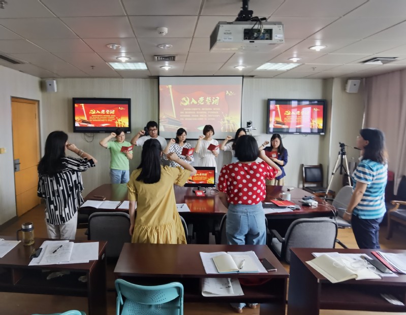 7月1日下午,在中国共产党成立99周年这个特殊的日子里, 机关十二支部在1705会议室开展了题为“回顾光辉历程 携手共创未来”的党日活动。活动共三项议程,一是党员集体过政治生日,重温入党誓词,分享初心故事;二是支部书记讲党课,党史、新中国史专题学习;三是“新时代新思想新作为基层说”和“总书记的这句话让我最受教育”感悟交流。活动由支部书记徐亚主持。