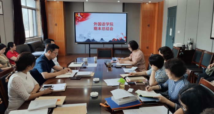 7月6日下午,外国语学院在古平岗校区二楼会议室召开了期末总结会议,会议由学院院长杨远主持,全体教职工参加了会议。