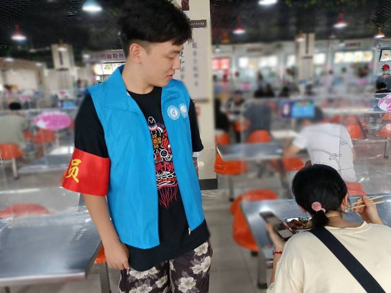 三是组建“监督队”。校学生会生活部的同学们利用中午课后时间排班上岗,在两个校区的食堂进行监督提醒。