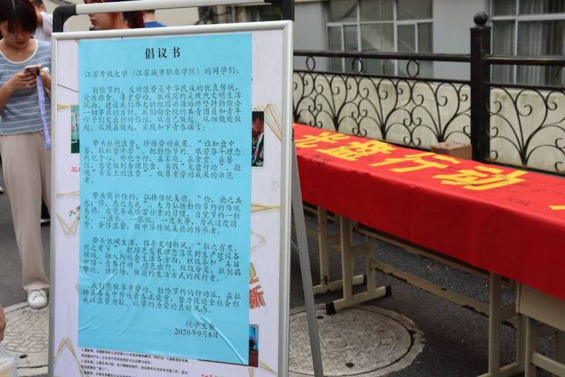 为响应习近平总书记“坚决制止餐饮浪费行为切实培养节约习惯,在全社会营造浪费可耻节约为荣的氛围”的指示精神,9月16日,一场由校学生会和设计学院学生会联合举办的以“厉行节约,反对浪费,光盘行动,从我做起”为主题的“节约”活动分别在两校区同时开展。