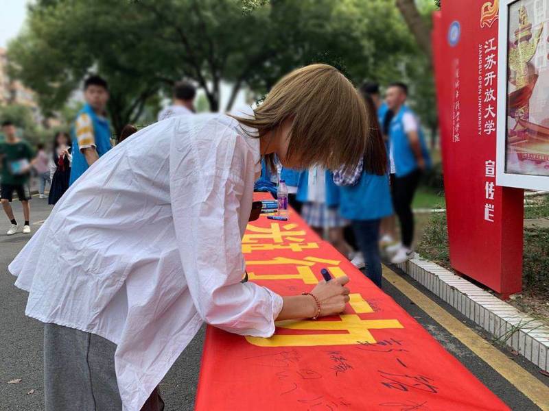 四是签名“表决心”。课后的食堂门口学生众多,看到“厉行节约,反对浪费,光盘行动,从我做起”的横幅和倡议书,以及学生会的宣讲,纷纷拿起笔在横幅上签名,表示自己拒绝浪费的决心。