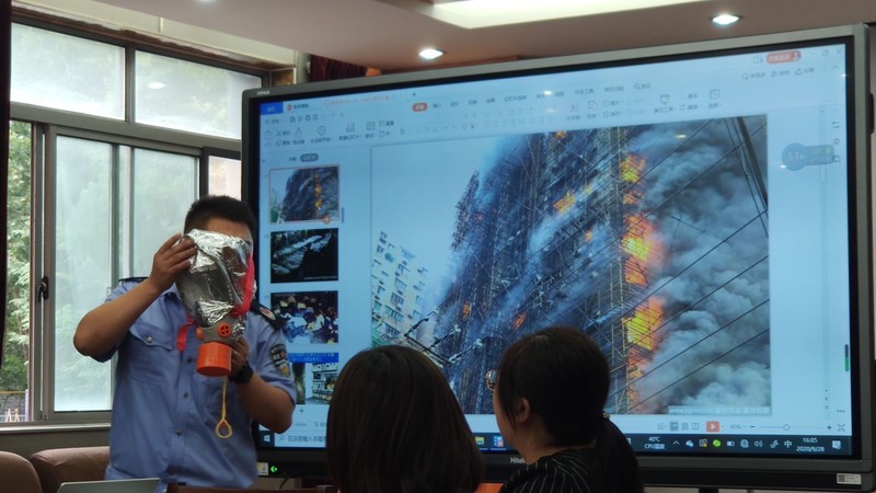 培训会上,孔教员用近年来发生的火灾典型案例生动地说明了增强防火意识的重要性,讲解了火灾隐患,灾害现场逃生等消防知识,并现场演示了防毒面具,新型灭火器等消防用具的使用方法。