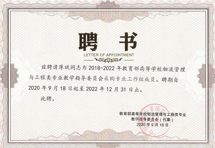 为推动工作组工作开展,2020年9月26-27日在昆明召开了物流管理专业等六个工作组成立大会暨第一次全体会议。会议上,商学院物流与供应链管理系张燕教授和薄斌副教授分别被聘为物流管理工作组和采购管理工作组成员,任期自2020年9月18日起至2022年12月31日止。