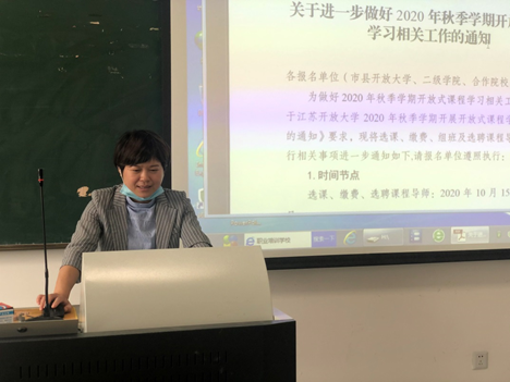 学院党总支部副书记张洁就江开本科学习向在场同学进行宣讲,从学校简介、办学优势、招生类型、招生对象、招生专业和毕业颁证等六个方面作了详细地介绍,并着重强调了我校学生报读江开本科的优势以及学历提升的意义。学工办主任黄敏对2020年开放式课程学习的报名、学习等相关工作进行了动员和指导,针对同学们关心的问题给予了耐心解答。