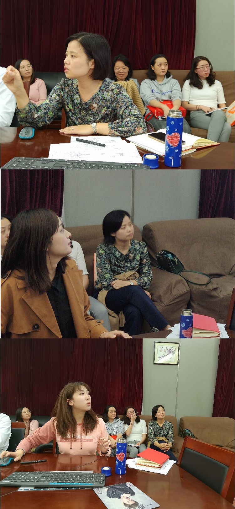 随后,章琼副书记分享了复旦大学等高校思政课程和课程思政融合进阶的经验,基于一些一线教师实现课程思政的经典案例,分享了她对课程思政的理解、对党和国家政策导向的解读。陈敏也分享了她作为一线教师,对于课程思政的宏观与微观的理解,和她多年实践的教学设计心得。大学英语B1的课程负责人王雁、A3的负责人胡紫嫣也随后分享了各自教研组课程思政的研究成果,并就课程建设中遇到的一些问题展开研讨。
