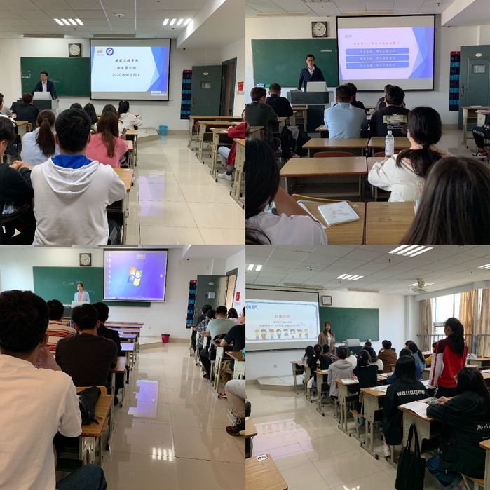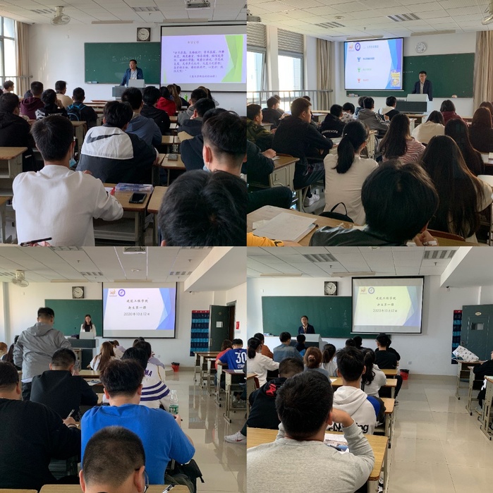10月12日上午,建筑工程学院2020级新生各班级在应天校区教学楼开展了入学教育第一课,全体新生班主任、辅导员主讲。