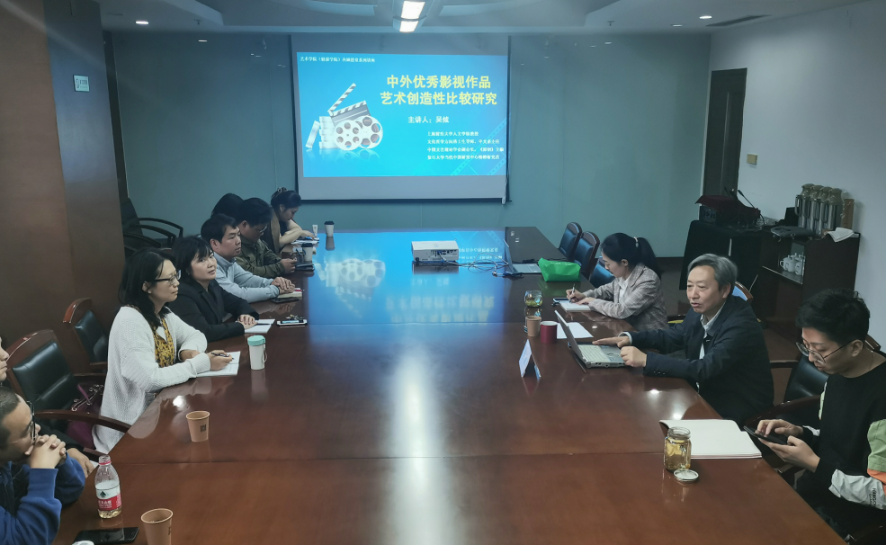 10月16日下午,艺术学院在定淮门校区二楼第三会议室举办高水平学术讲座。讲座主讲人为上海财经大学人文学院中文系系主任吴炫教授,吴炫教授是文化哲学方向博士生导师,中国文艺理论学会副会长,复旦大学当代中国研究中心特聘研究员,讲座的题目为《中外优秀影视作品艺术创造性比较研究》,讲座由学院副院长、党总支部副书记黄一斓主持,学院全体教师参加。