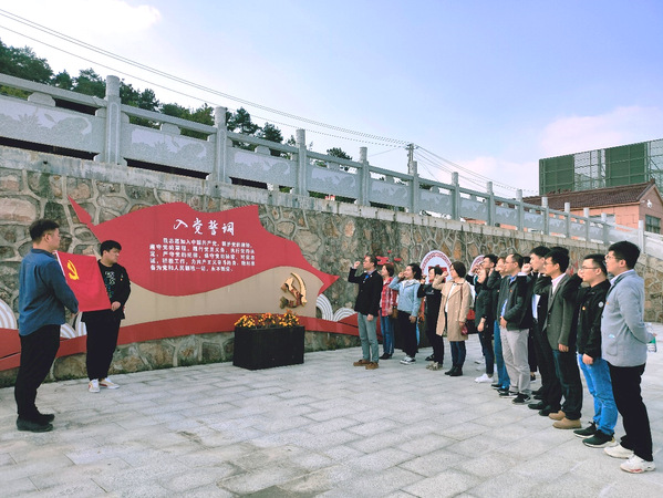 学院院长、党总支部副书记朱祎带领全体党员瞻仰了横山烈士纪念碑,共同重温了入党誓词。党员们佩戴党徽,全体面向庄严的党旗,郑重举起右手,再次庄严宣誓:“我志愿加入中国共产党……随时准备为党和人民牺牲一切,永不叛党。”誓言铿锵,雄浑刚劲,体现了党员们对中国共产党的无限忠诚,坚定了入党使命、奋斗初心。