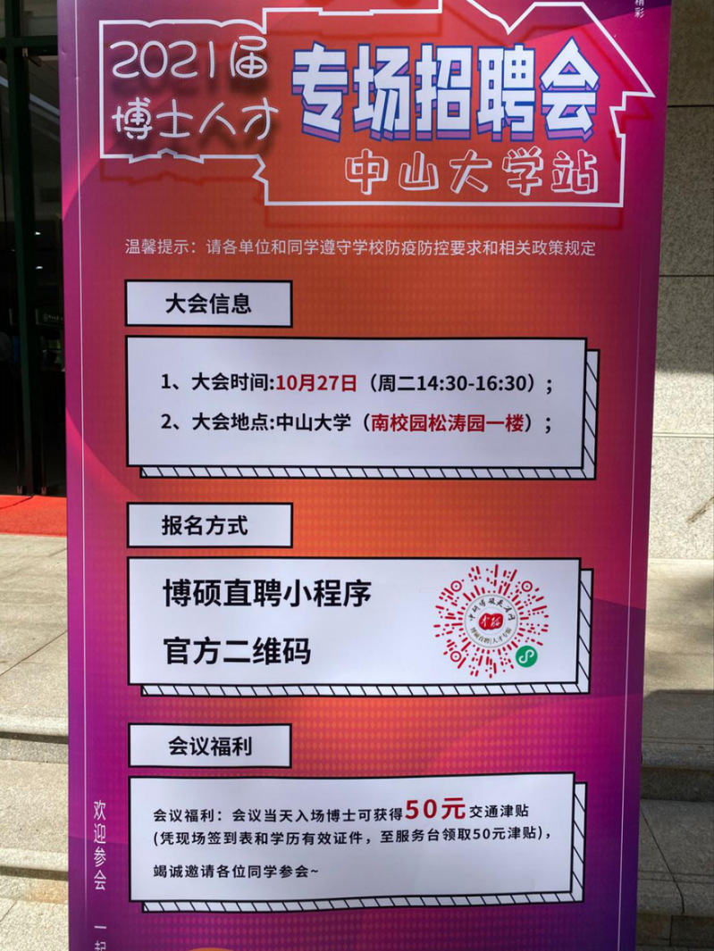 为进一步加强信息工程学院科技人才队伍的建设,10月26日至28日,院办秘书胡路伟和孙蕊赴广州市参加中山大学博士专场招聘会。