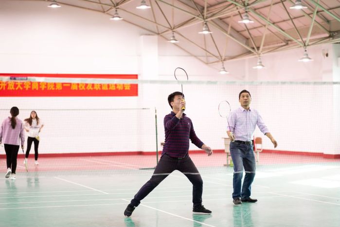 此次运动会设有拔河、篮球、羽毛球和乒乓球项目。拔河比赛大大拉近了校友与老师的友谊,连接了校友与学生的团结和友爱,演绎出了奋斗和拼搏,满腔热血,终不放弃。经过车轮战,最终校友队获得第一名;篮球队与校友的3V3友谊赛于响亮的哨声中进行,校友与篮球队员在篮筐前身姿矫健;羽毛球单双打比赛中,个人技巧与团队协作展现地淋漓尽致;乒乓球比赛中,老师和校友们身轻如燕,特别的花式打法赢得阵阵称赞;整个运动会充满欢声笑语,比赛结束后,在综合楼5楼报告厅进行了颁奖仪式。