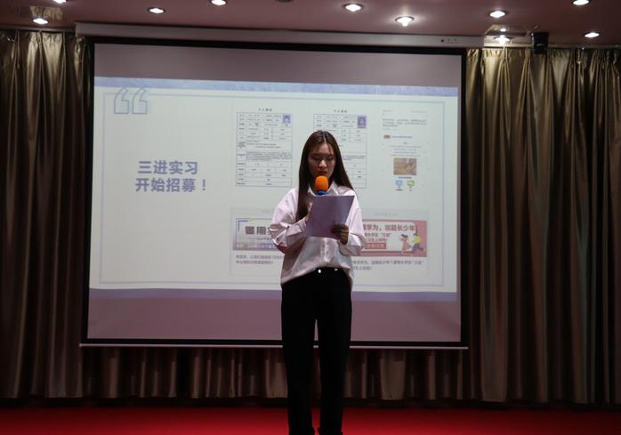 汇报会首先由团总支书记吴轲威老师讲话,她总结了学院暑期社会实践成果,同学们围绕“青春心向党 建功新时代”主题,以国情社情调研、志愿服务、寻访优秀校友、弘扬传统文化、城乡绿色调研、就业创业等多种形式开展。她鼓励同学们将社会化实践中的成果及时分享,真正受教育、长才干、作贡献。接着对评选出的20名暑期社会实践优秀个人和20篇暑期社会实践优秀报告进行了表彰。分享活动分为优秀团队与优秀个人展示。在校级社会实践汇报会上获得二等奖的“我和我的家乡”“寻访优秀校友”小分队进行了展示。19会计黄瑶嘉、陈思敏等同学作为优秀个人,汇报了自己在九拍教育做实习教师、参观红色实践基地等经历,进行国情、社情调研。
