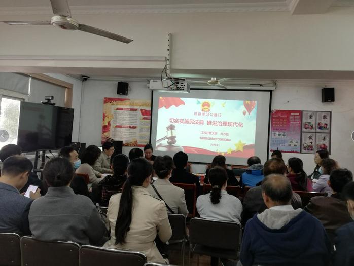 党日活动第一阶段,由第二党支部宣传委员龚万松副教授作“切实实施民法典,推进治理现代化”专题党课。龚老师应对当下社区治理的热点问题,重点宣讲了物业管理、婚姻家庭、继承与遗嘱等新修订的法律规定。第一党支部书记姜璟老师结合党课内容,对疫情期间细化基层治理作了交流发言。