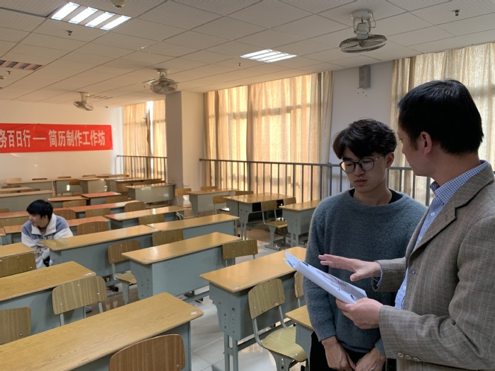 在简历制作工作坊活动中,南京市人社局特聘导师徐海峰老师为同学们讲解了撰写简历应遵循的原则和要点,结合建筑工程学院各专业学生就业岗位特点对同学们简历制作进行了具体指导,现场回答了同学们在求职和简历制作中的疑问,并对毕业生简历进行了一对一的指导。