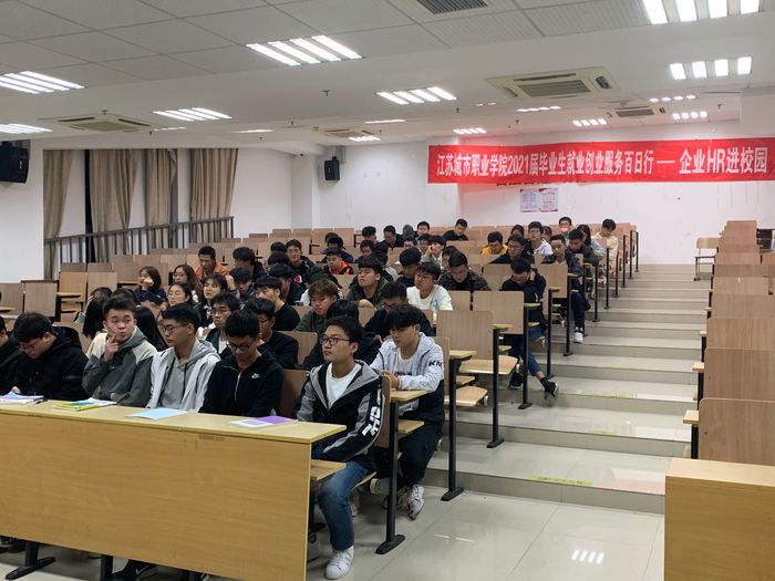 在企业HR进校园活动中,安排了《劳动合同法解读与就业权益保护》、《疫情背景下的大学生求职策略》两场针对性强的讲座,邀请企业资深人力资源负责人从劳动合同、劳动仲裁、社会保险、劳动报酬等多个角度向同学们介绍在就业中可能遇到的问题和应对;同时对疫情背景下企业生存状况和用人需求情况进行了形势上的分析,引导毕业生合理定位,积极调整求职策略。