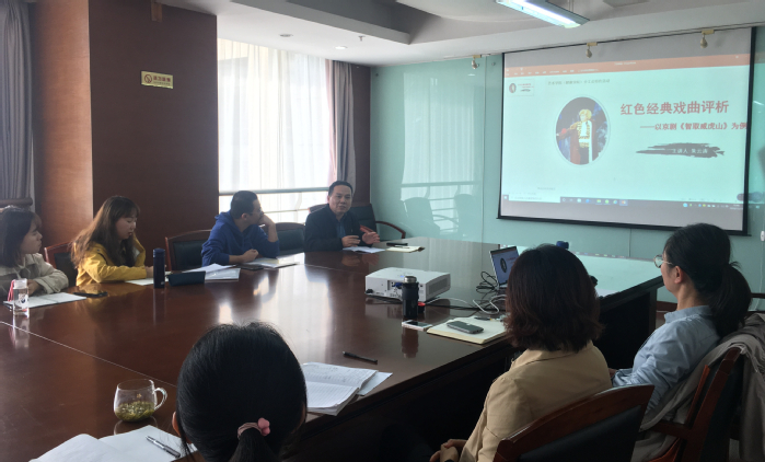为进一步促进学院的学科专业发展,增强教职工的文化素养和爱国情怀,11月19日,艺术学院分工会在定淮门校区第三会议室开展红色经典戏曲评析活动,邀请戏曲表演专业朱云涛副教授进行讲解,学院全体教职工参加了本次活动。