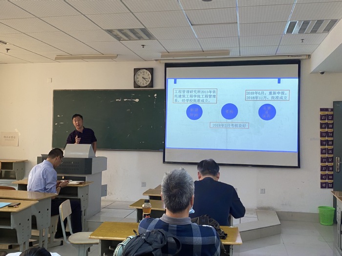 活动中,建筑工程学院无障碍研究协同中心的陈从建副教授、智能建造与区块链协同创新研究中心的徐德老师、工程管理研究所的张晓东教授分别介绍了自己所在科研平台的性质和任务,交流与汇报了各自的研究团队的主要工作以及取得的各项科研成果,对于“十四五规划”开局之年,如何贴近国家发展,进一步做好科研项目的拓展工作,也都做了详细的实施计划。