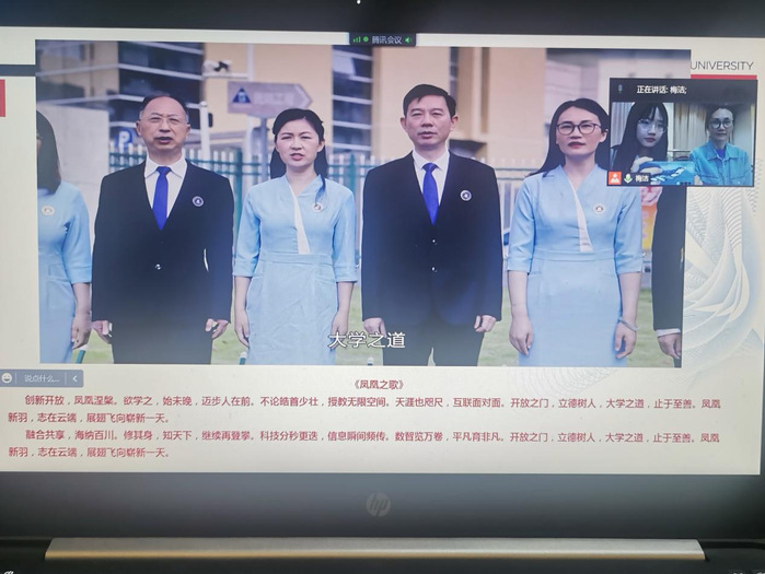 梅洁向校友们作了学校UIS系统宣贯,详细解读了我校办学核心精神、校风、校训、吉祥物等校园文化内涵,带领大家齐唱凤凰之歌,助力校友们进一步了解我校校园文化。同时,梅洁还向大家发出2022年校友返校邀约,希望五位校友积极加入学院校友联谊分会,为学院校友工作贡献力量。