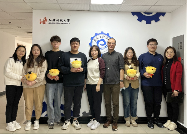 座谈会气氛热烈、轻松愉快。会后,朱祎与刘慧英向学生赠与了江苏开放大学吉祥物“牛MOMO”与学院定制纪念笔记本,并亲切合影留念。