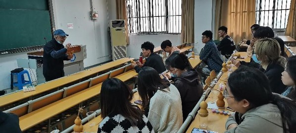2022年11月18日,东校区教学楼,在南京市民俗博物馆的友好支持下,为学生开展了“民俗非遗”文化体验活动。其中包含了布贴画、葫芦画、面塑三个项目,非遗传承人分别对三个非遗项目的起源、工艺流程、工艺特点以及分类与过程逐个进行了讲解,然后分组开展非遗体验制作活动。