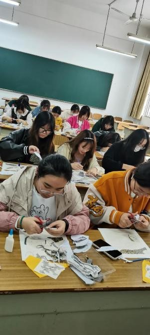 随后在老师的指导下,学生对非遗项目进行制作,在制作过程中大家品味了传统文化内涵和独特技艺之美,课程现场学生对非遗产生了浓厚的兴趣,有部分学生表示第一次感受到传统文化的魅力与手工艺之美,并表示准备在毕业设计中融入非遗等传统文化元素,利用设计元素将传统文化进行现代化转化,将自己小小的一份力量参与到推动非遗的创新发展中,积极实现中华优秀传统文化的高质量传播。非遗老师也表示很乐意和设计类大学生一起创作,也看到学生新的创作方式,为非遗的发展注入了新的血液。