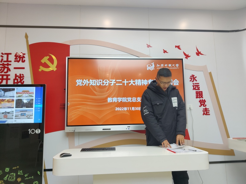 为全面深入学习贯彻党的二十大精神,贯彻落实习近平总书记关于做好新时代党的统一战线工作的重要思想,教育学院于2022年11月30日下午在定淮门校区同心教育实践基地召开了党外知识分子党的二十大精神专题学习会。会议由学院党总支书记罗殷主持,学院党总支部统战委员、支部统战委员、民主党派成员、非党员高级知识分子和少数民族教师代表等参加。