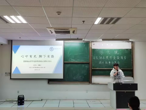 为了鼓励同学们勤奋学习、努力进取,在德智体美等方面全面发展,学院关工委和学生会于11月24日在教学楼101联合开展“榜样的力量---国家励志奖学金获得者成长故事分享会”活动,校关工委陈军老师、信工院党总支副书记顾晨老师、全体辅导员老师以及98名学生代表参加了此次活动。