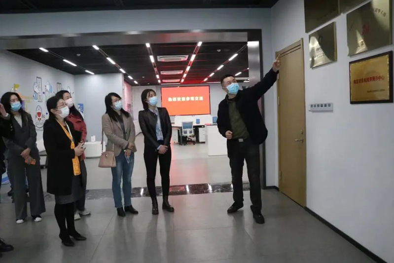 党的二十大报告指出,“教育、科技、人才是全面建设社会主义现代化国家的基础性、战略性支撑”。为深入学习贯彻党的二十大精神,扎实推进政校企合作共建,11月25日,学校党委常委、宣传部部长、马克思主义学院院长季海菊,学院党总支部书记张露,办公室主任李欢欢,思政教研部副主任高杨,青年教师邢译一行5人,实地走访建邺区人社局开展合作调研。建邺区人社局党委委员、副局长李兴,建邺区劳动就业管理中心主任杨洪及企业代表等参加调研。